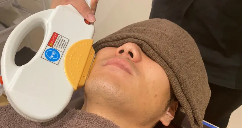 DMRでは、高スペックの最新脱毛機を導入しています。毛根だけでなく毛包全体にアプローチする方式のため、従来の脱毛に比べて痛みや熱さを感じにくいのが特徴です。温かさを感じる程度のやさしい施術で、脱毛が初めての方や痛みに不安のある方、敏感肌の方でも安心して通っていただけます。